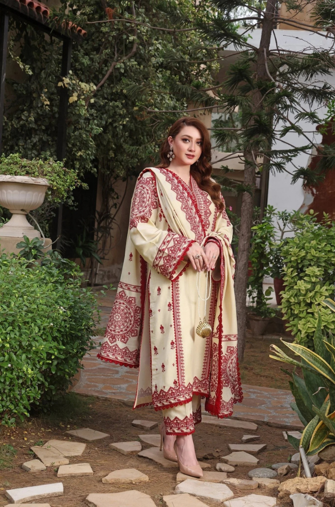Unstitched 3PC Embroidered