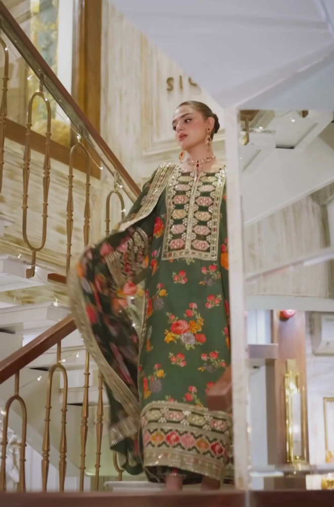 Shirt: Front Full Printed With Heavy Embroidered Neck Patch with Organza Embroidered Daman Patch
